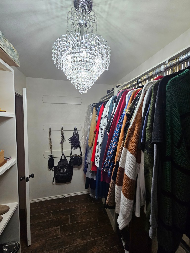 I took every single item out of my closet, hanging, folded, thrown, it didn’t matter- it was removed from the closet and taken to another room. Once the closet was emptied and a blank slate, I cleaned every single surface.