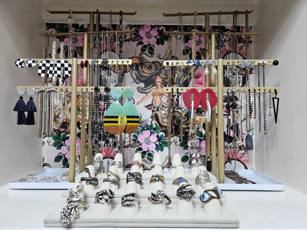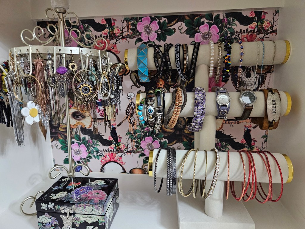 The last step in the jewelry-saga was bracelets and watches. I chose a 3-tier bracelet display rack to hold all of these items.