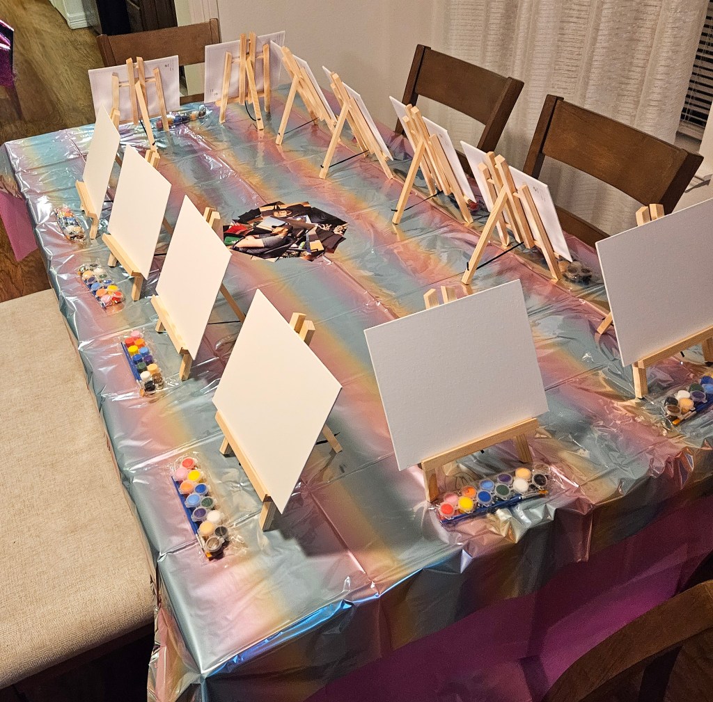 Painting would go well with the Princess Diaries theme, while also being funny as we were painting photos of the groom. We ended up doing the paintings in the morning while we had breakfast and mimosas.