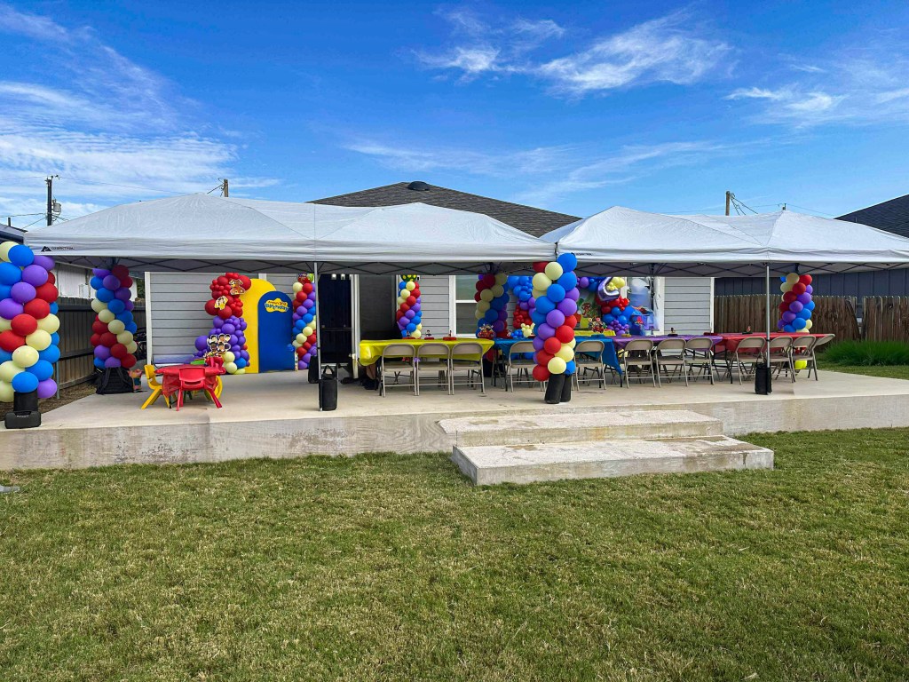Because it’s so hot outside in July I rented canopies to cover the porch for a shaded area to eat and for parents to rest.